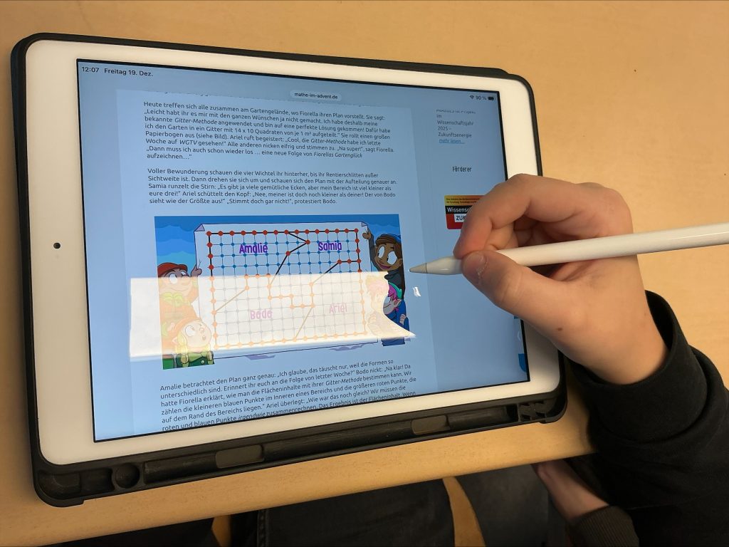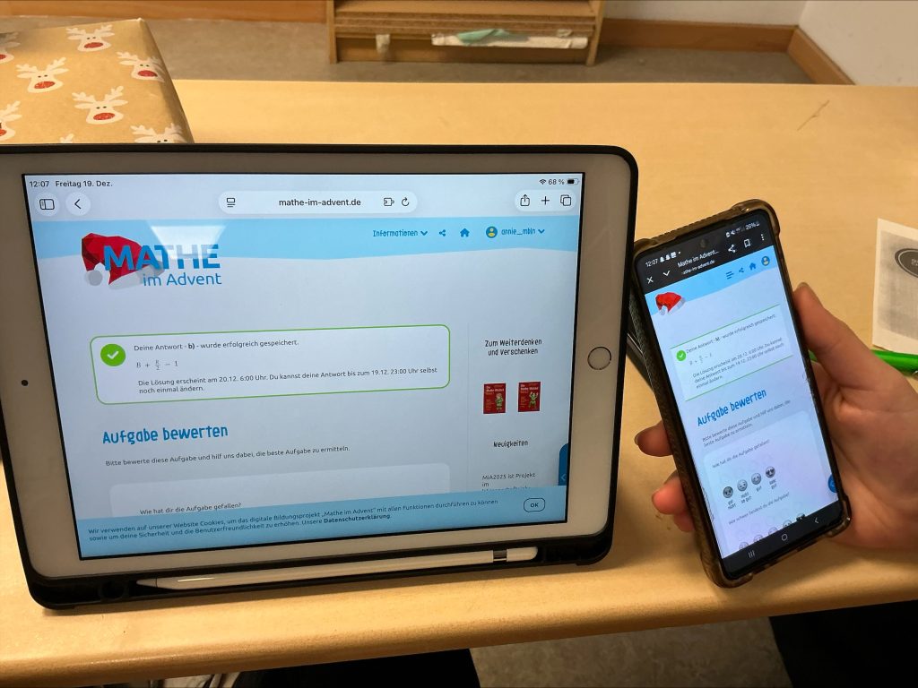 Durch die Unterstützung des Fördervereins konnten in diesem Jahr Schüler:innen der Klassen 6ar, 6bs, 7ar, 7bs, 7es, 8es und 9ar unserer Schule am Wettbewerb „Mathe im Advent” teilnehmen. Dazu bearbeiteten die Kinder und Jugendlichen täglich eine Aufgabe, die über den Tellerrand des schulischen Mathematikunterrichts hinausging. Die Aufgaben waren in liebevoll gestaltete Geschichten rund um die Welt der Weihnachtswichtel eingebettet und zeigten alltagsnahe sowie kreative Anwendungen von Mathematik. So boten sie denjenigen, die Mathe weniger mögen, einen neuen Zugang zur Mathematik und denjenigen, die Mathe bereits mögen, eine Bereicherung durch täglich wechselnde Themen. Während des Wettbewerbs waren Selbstverantwortung und Durchhaltevermögen gefragt, denn die Aufgaben wurden größtenteils selbstständig außerhalb des Unterrichts gelöst. Die Abgabe erfolgte digital und die Lösungen konnten die Schüler:innen am nächsten Morgen einsehen. Einige Lehrkräfte stellten darüber hinaus Unterrichtszeit zur Verfügung (s. Fotos).