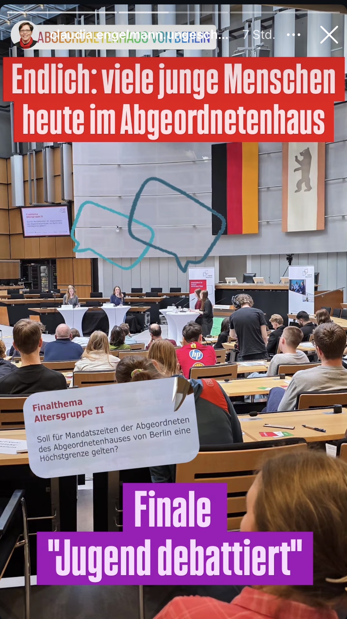 Bereits zum vierten Mal gelang es einer Schülerin unserer Schule das Landesfinale zu erreichen und im großen Plenarsaal des Abgeordnetenhauses debattieren zu dürfen.